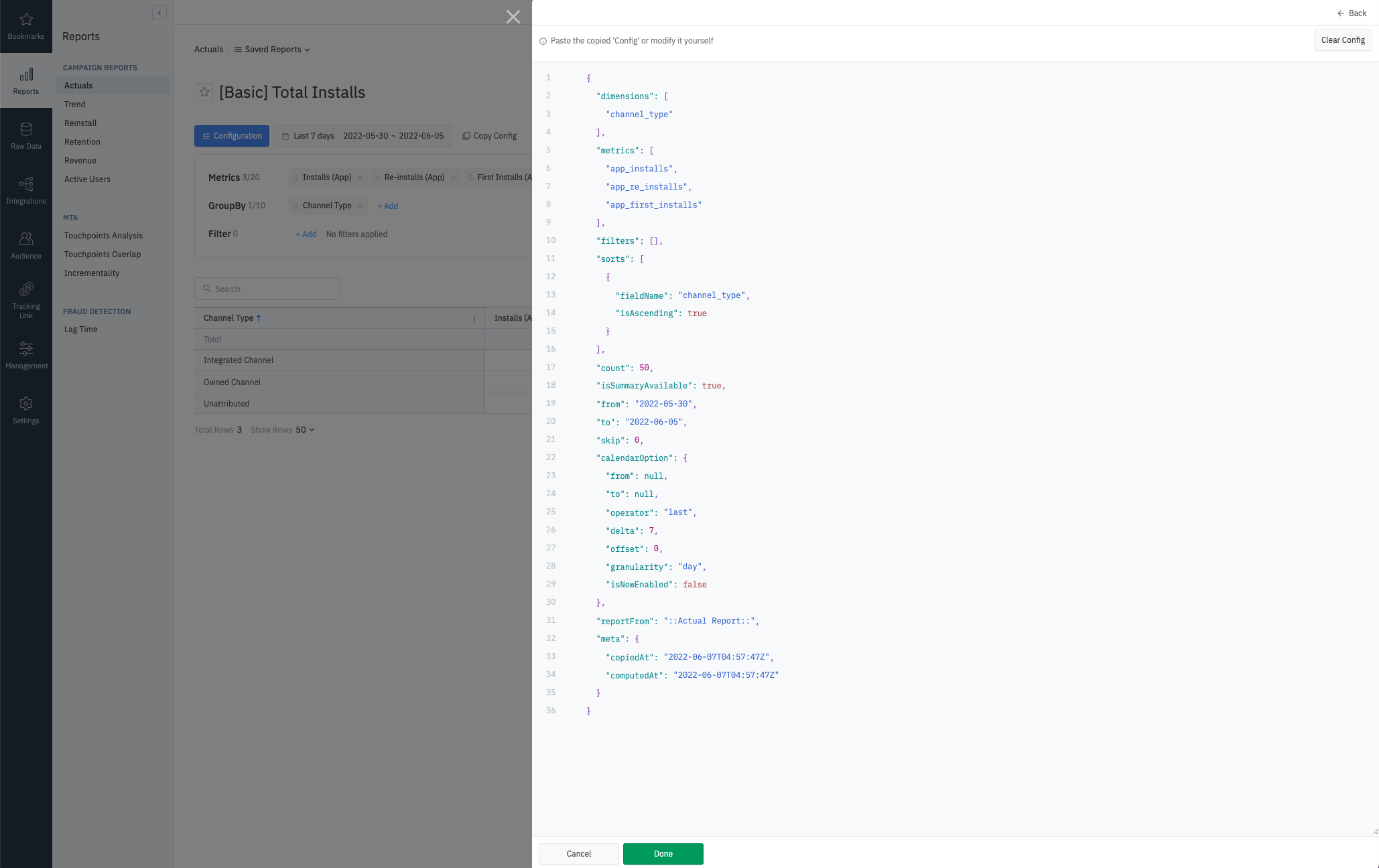 With Airbridge, sharing these settings is incredibly simple – click the [Copy Config] and share the copied config file.