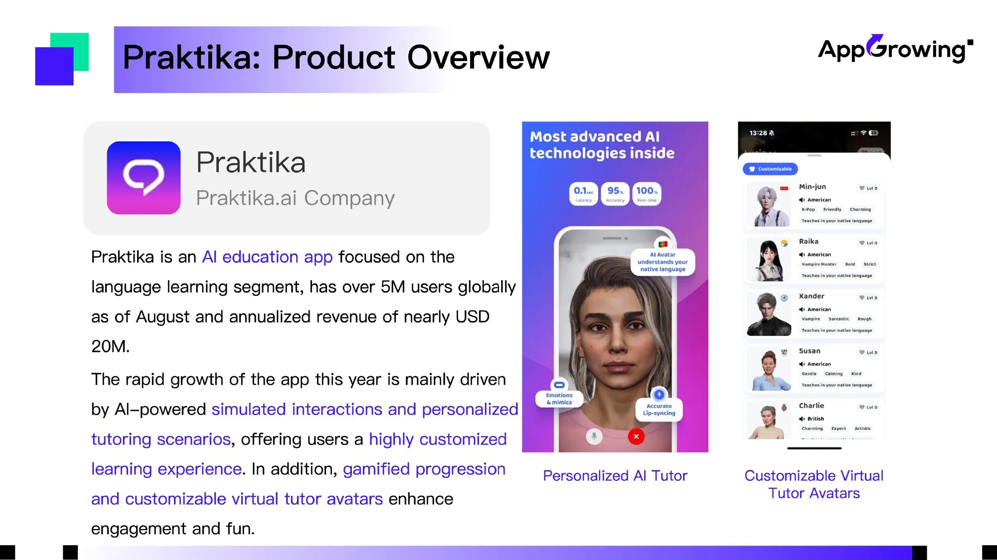 AI 언어 학습 앱 프랙티카가 성공 사례로 소개됐는데요. 개인화 AI 튜터와 유저 취향에 맞는 아바타 기능으로 글로벌 유저 5백만, 연 매출 2,000만 달러(약 280억 원)라는 놀라운 성과를 기록하고 있어요.