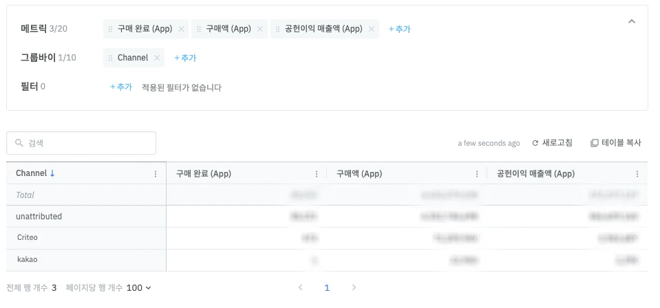 여기서 ROAS는, 사용한 비용에 대한 매출액 비중을 의미하며, Revenue / Cost *100 (%)으로 계산합니다. 이외에도 Revenue 관련 추가 메트릭들이 추후 더 지원될 예정입니다.