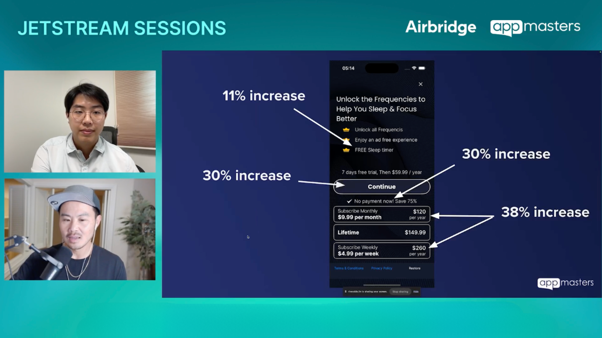 Trong phiên Jetstream này, CEO Airbridge – Roi Nam đã có buổi trò chuyện cùng Steve Young, Founder của App Masters và là một trong những chuyên gia uy tín nhất trong lĩnh vực tăng trưởng ứng dụng subscription. Với hơn 10 năm kinh nghiệm về ASO, Apple Search Ads (ASA), định giá, và paywall, Steve đã cố vấn giúp hàng trăm ứng dụng phát triển dựa trên kinh nghiệm thực chiến của mình.